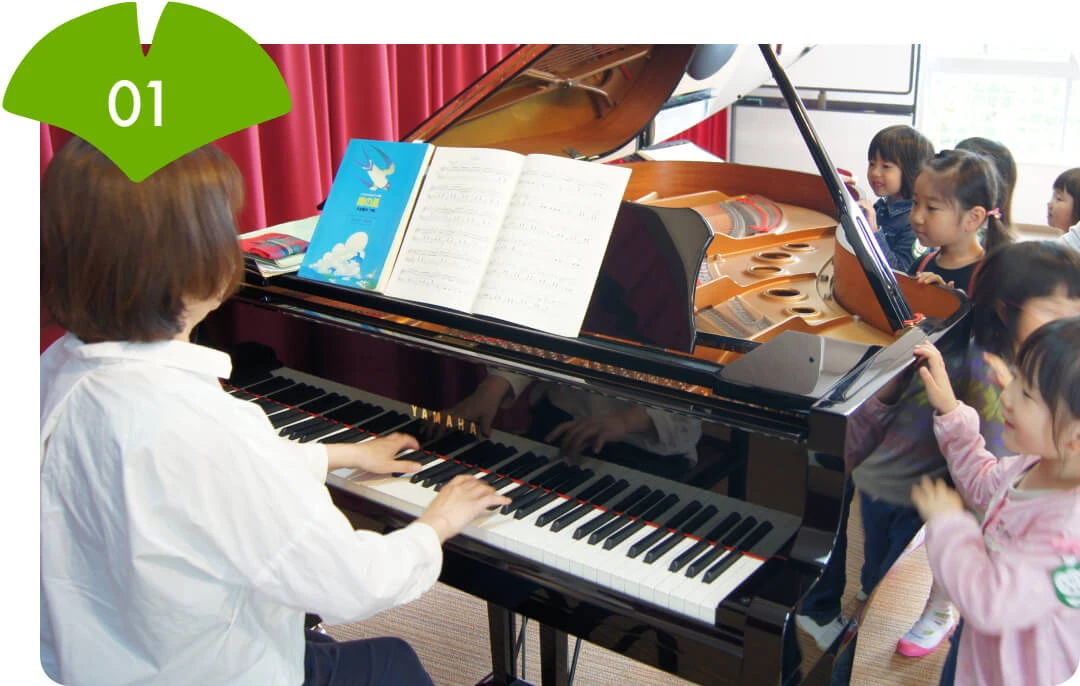 幼児体育・幼児美術・幼児音楽に独自のカリキュラムを持ち専任講師による指導が行われています。健やかな体と情緒豊かな子どもたちが育っています。