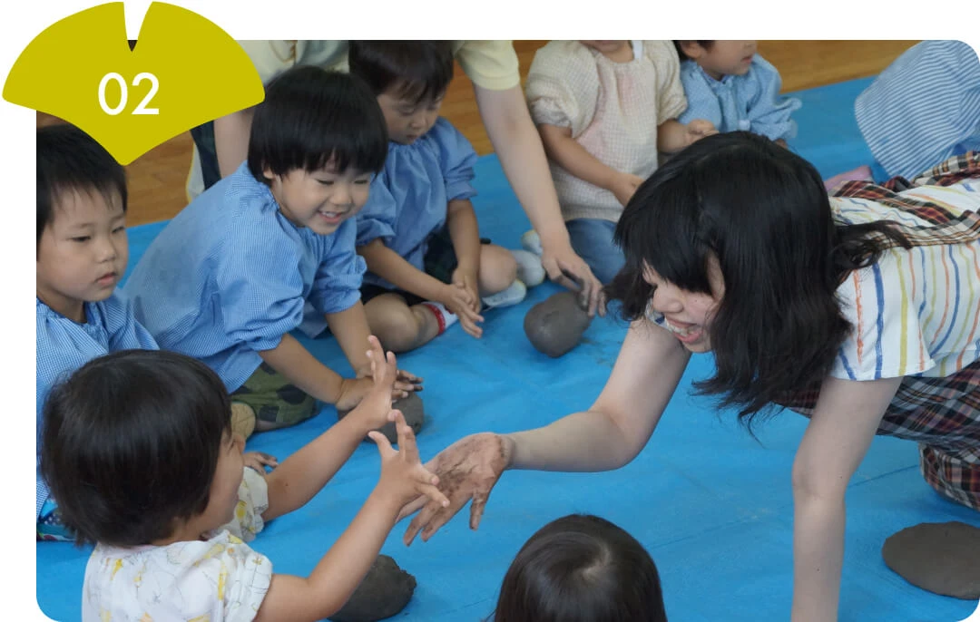 遊びの中で育っていく、心と身体の調和のとれた「健康で明るい子ども」、自分の考えや意思を具体化し行動することができる「創造する子ども」、豊かな感性に育まれた「情緒豊かな子ども」を目標に、発達に応じたきめ細かい保育を目指しています。